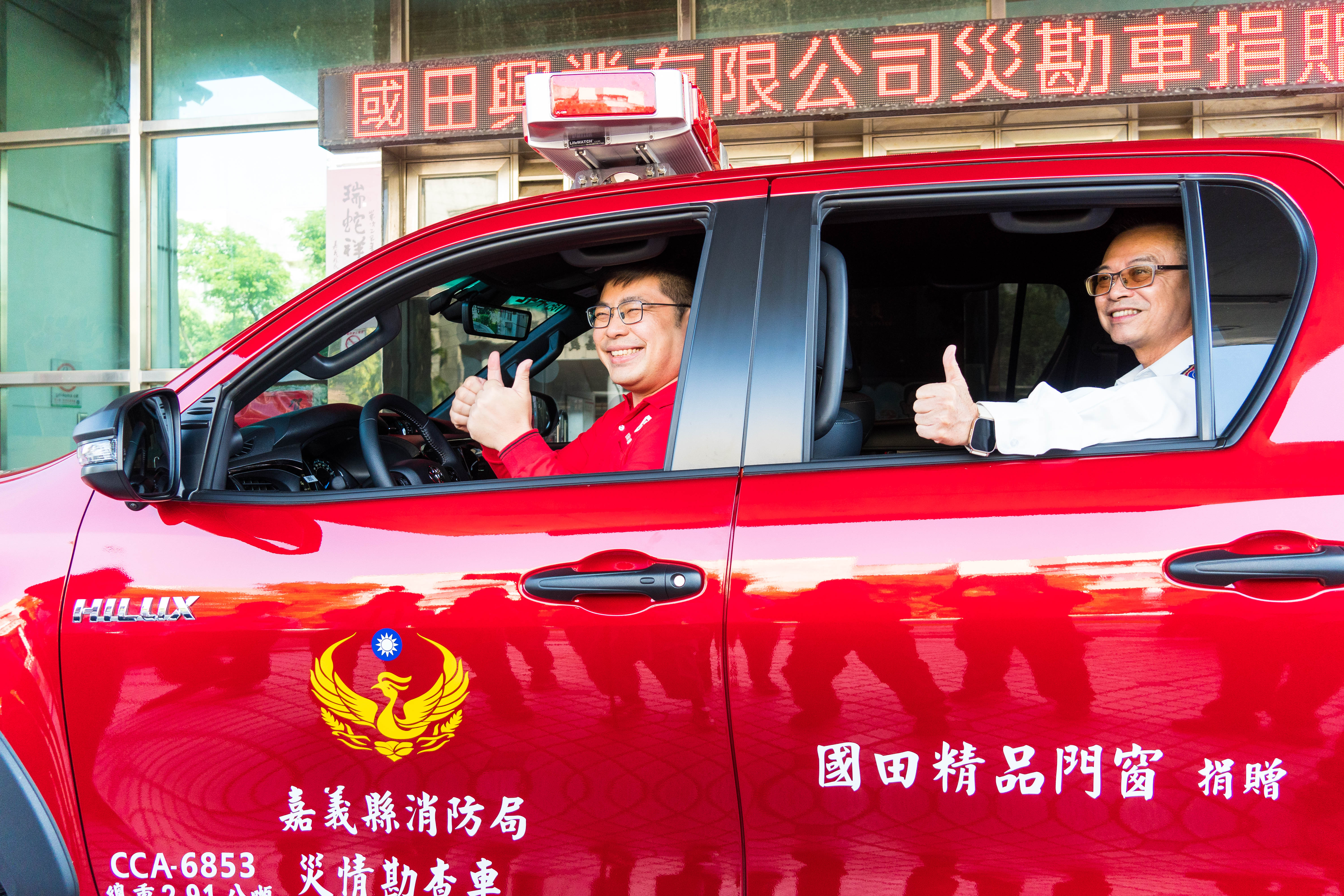 嘉義縣消防局災情勘查車捐贈 國田興業有限公司秉持「取之社會、用之社會」的精神,慷慨捐贈災情勘查車1輛予嘉義縣消防局鹿草分隊,總價值新臺幣167萬元,本日(12/16)下午由嘉義縣消防局局長蔡建安代表接受並致贈感謝獎狀。 -